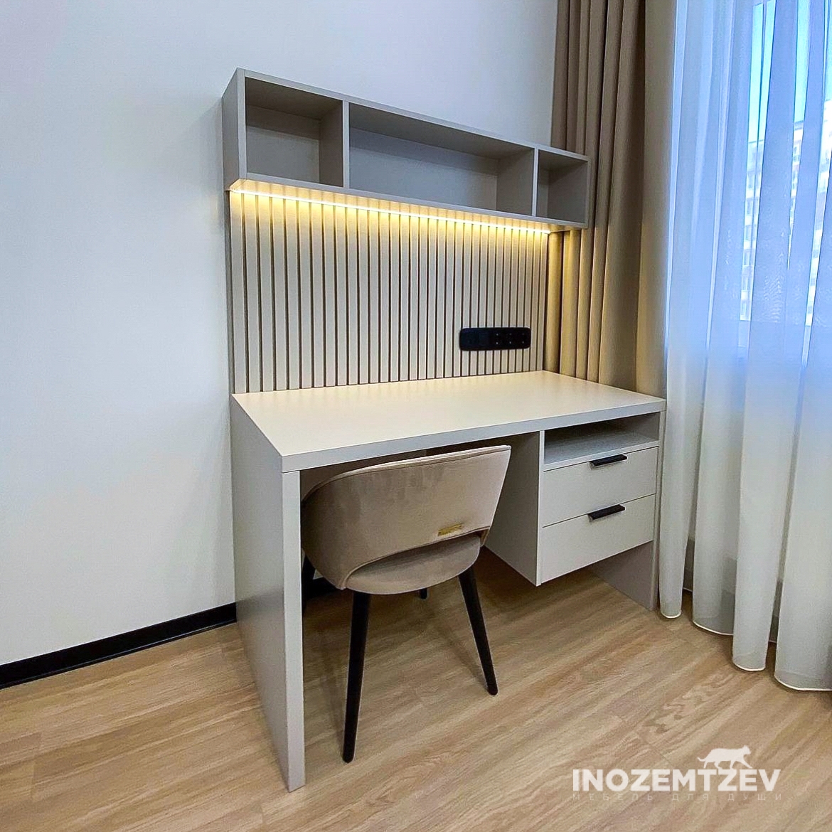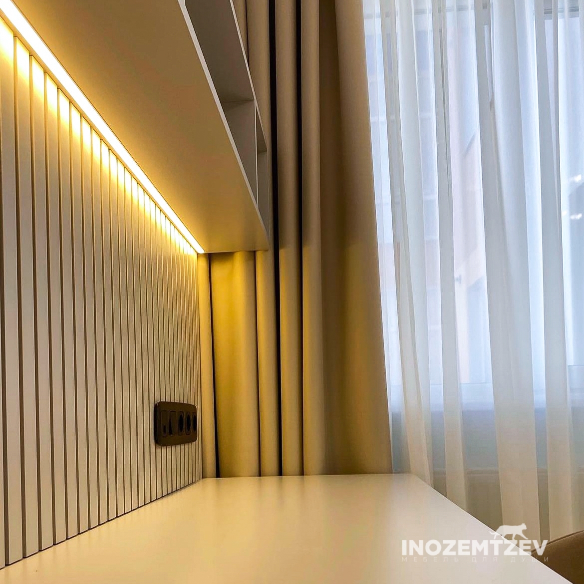Рабочее пространство с надстройкой и реечной стеновой панелью