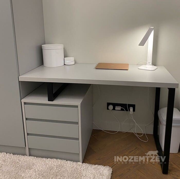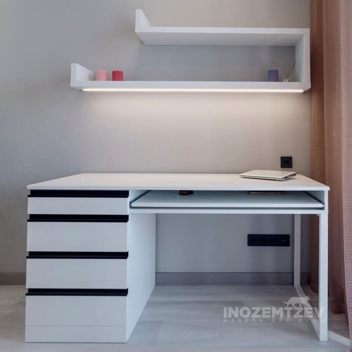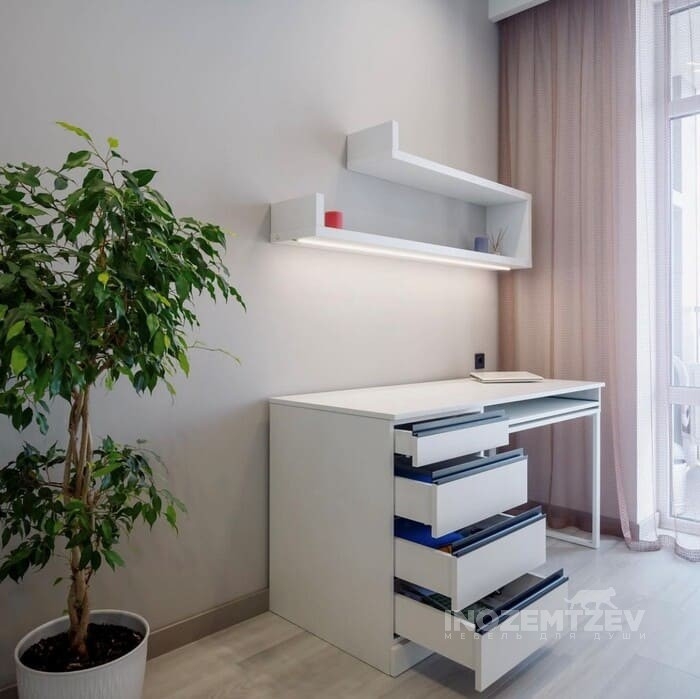 Письменный стол со шкафом в белом цвете в современном стиле