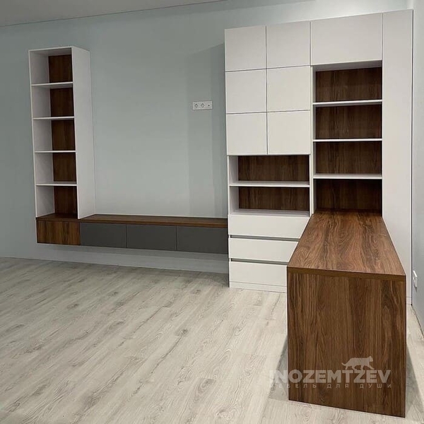 Стильный шкаф с рабочим местом и нишей под телевизор