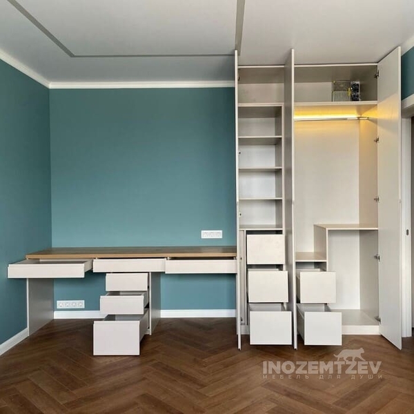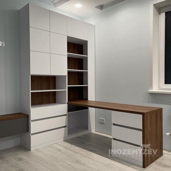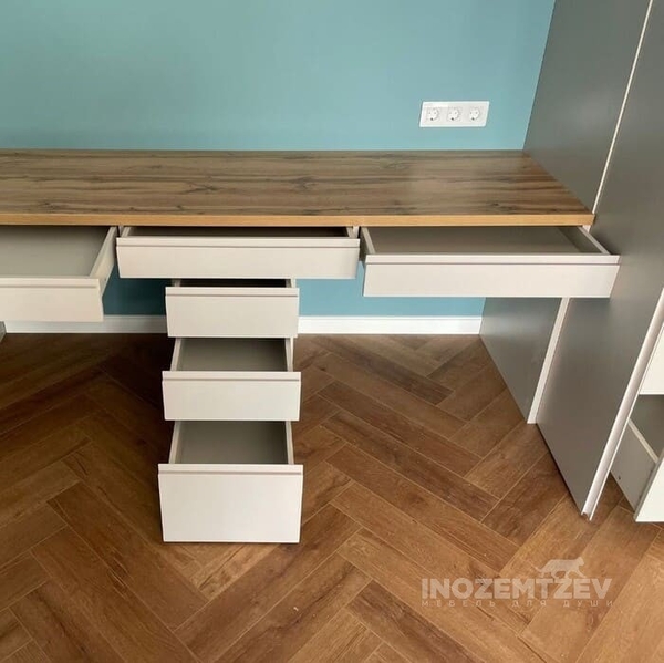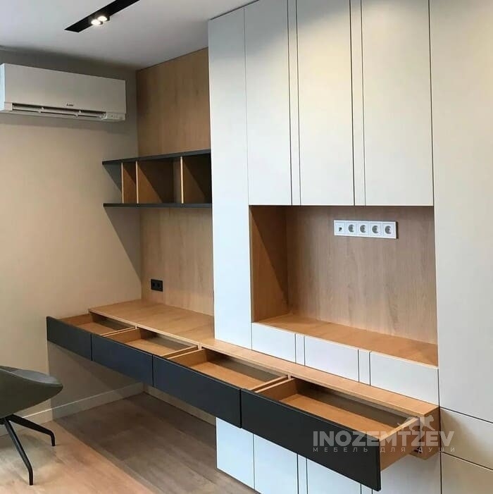 Шкаф переходящий в письменный стол с большим количеством выдвижных ящиков