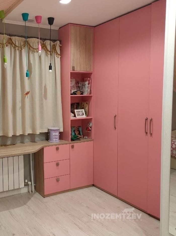 Угловой шкаф со столом в детскую комнату девочки