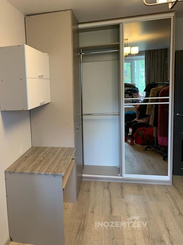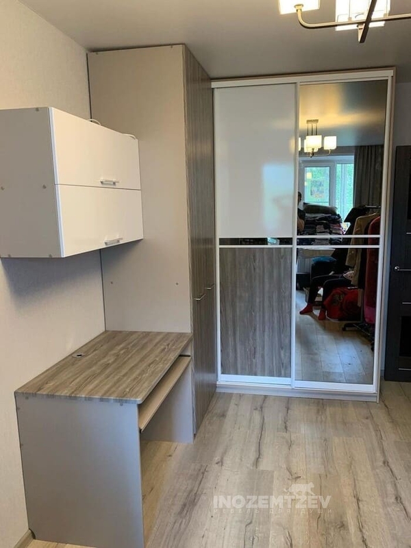 Комплекс мебели для подростка с угловым шкафом с комбинированными дверями: распашными и купе