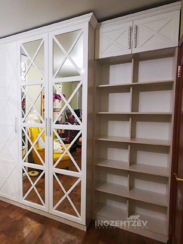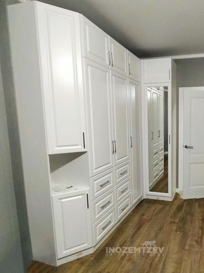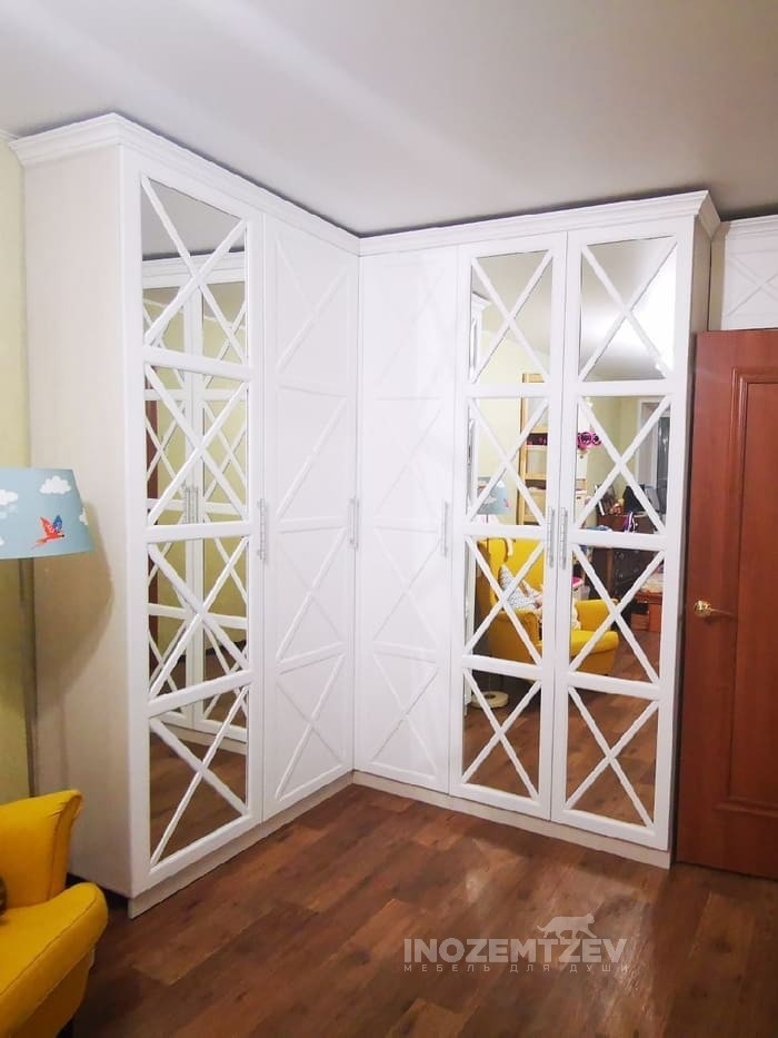 Встроенный угловой шкаф с зеркальными вставками