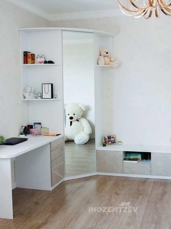 Угловой шкаф в детскую практичен и удобен. Это просто находка для того, чтобы ребёнок мог разместить на его полках все свои вещи, упорядочив их по своему усмотрению. Угловой шкаф здорово экономит пространство, по желанию заказчика может иметь открытые полки и секции и бывает разных видов и конструкций. На заказ можно выполнить любую модификацию углового шкафа: со стенкой, с кроватью, встроенную. При этом учитываются особенности: - роста малыша, для которого предназначается шкаф; - размеры и внутреннее расположение детской комнаты; - функциональные элементы для хранения — полки, секции, и их габариты.