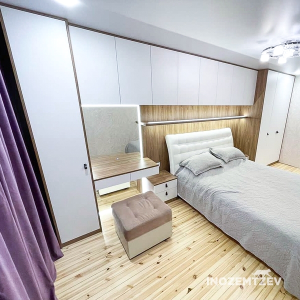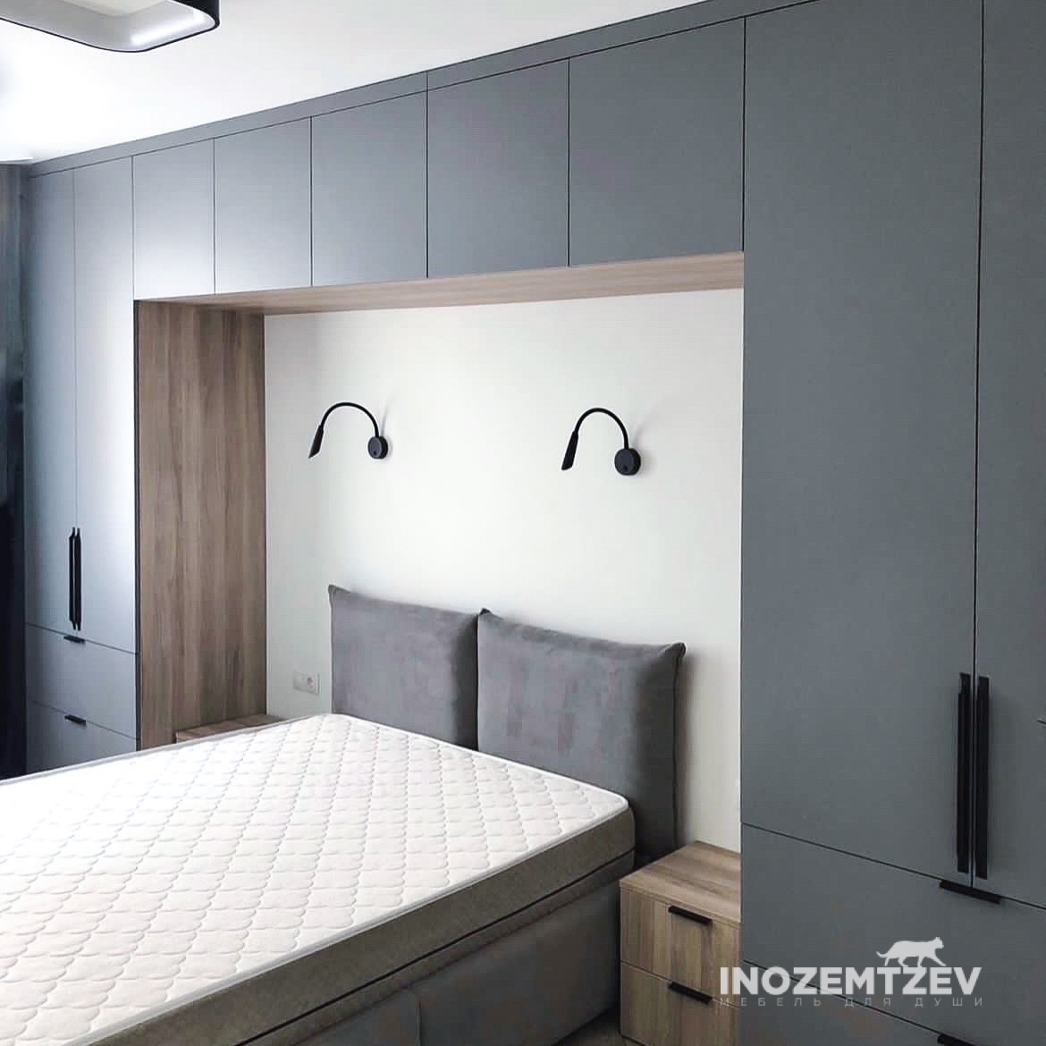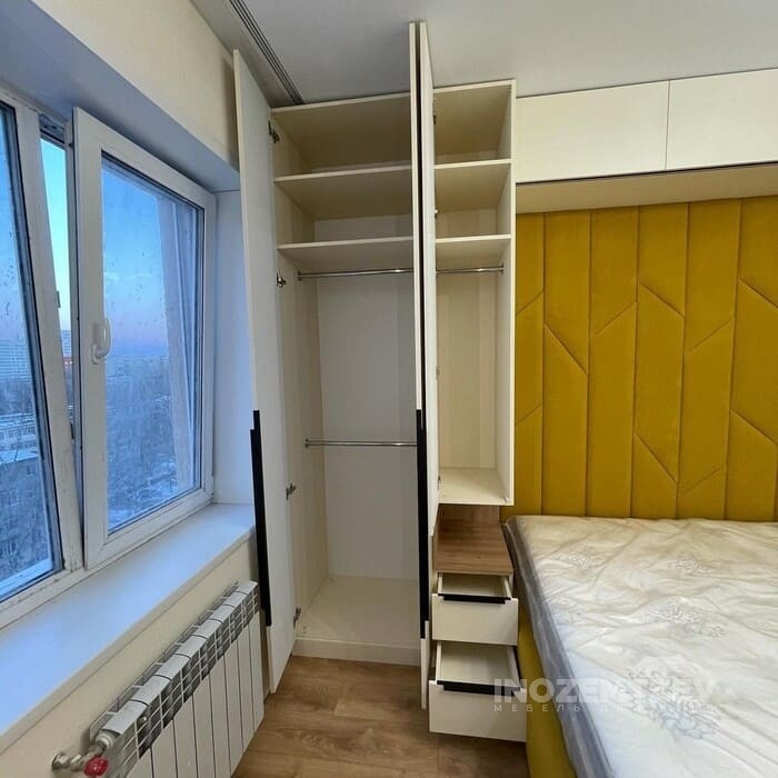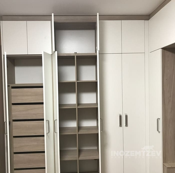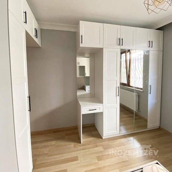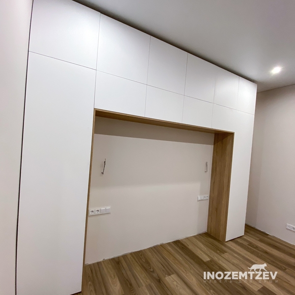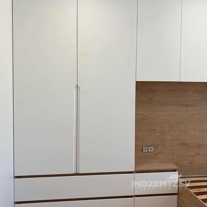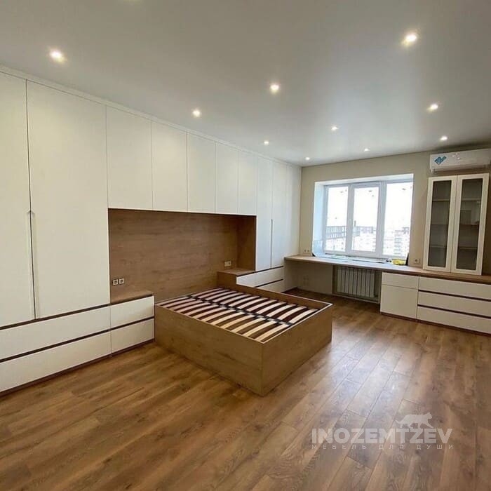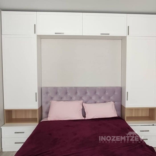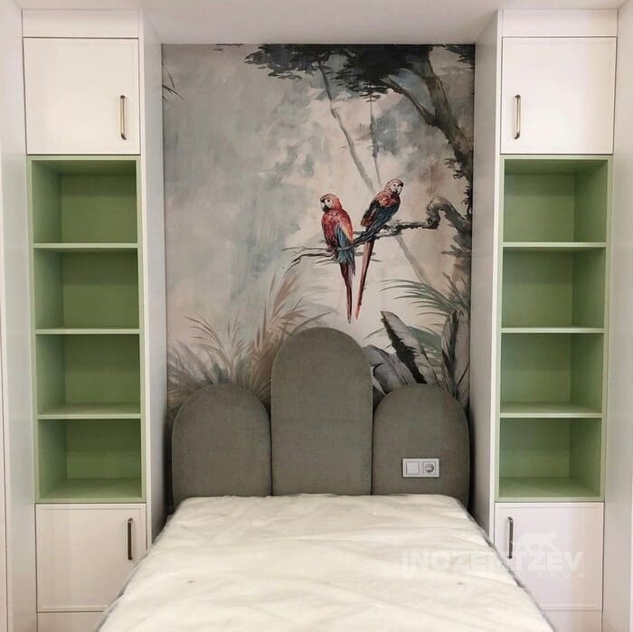 Шкафы устанавливаются по обеим сторонам от изголовья, они могут быть во всю высоту стены, либо с антресолями. Над самой кроватью, обычно, навешивают дополнительные шкафчики или полочки. Однако, некоторые, в целях перестраховки, оставляют это пространство пустым. Идеальный шкаф для вашего интерьера с грамотной организацией пространства легко превращается из мечты в реальность, если за дело берутся настоящие профессионалы.