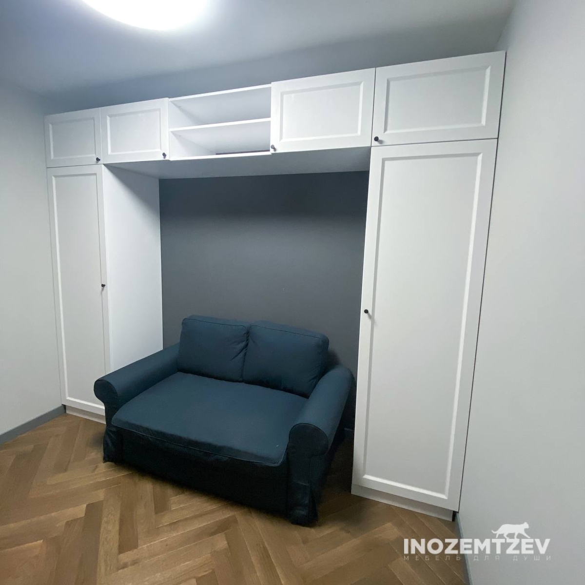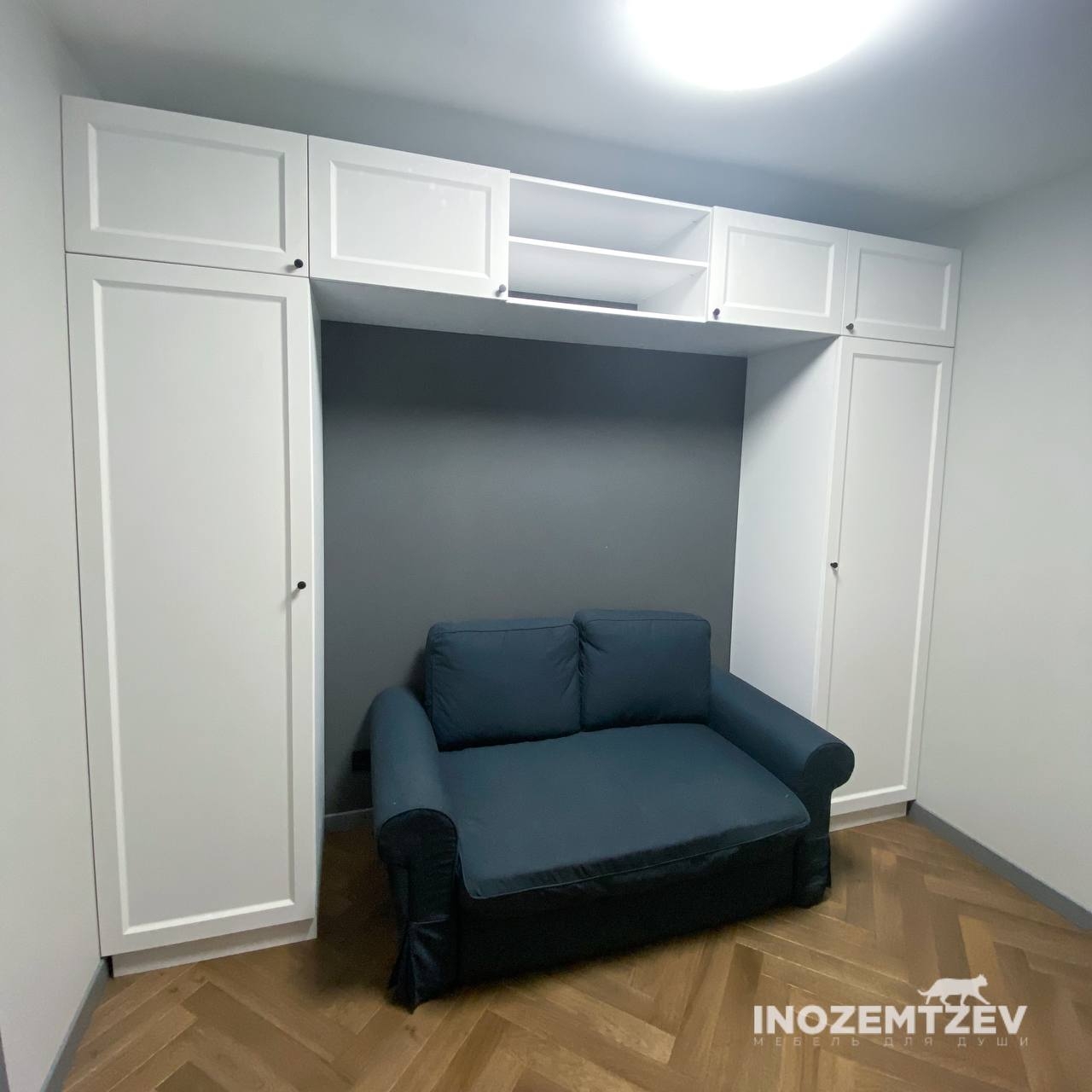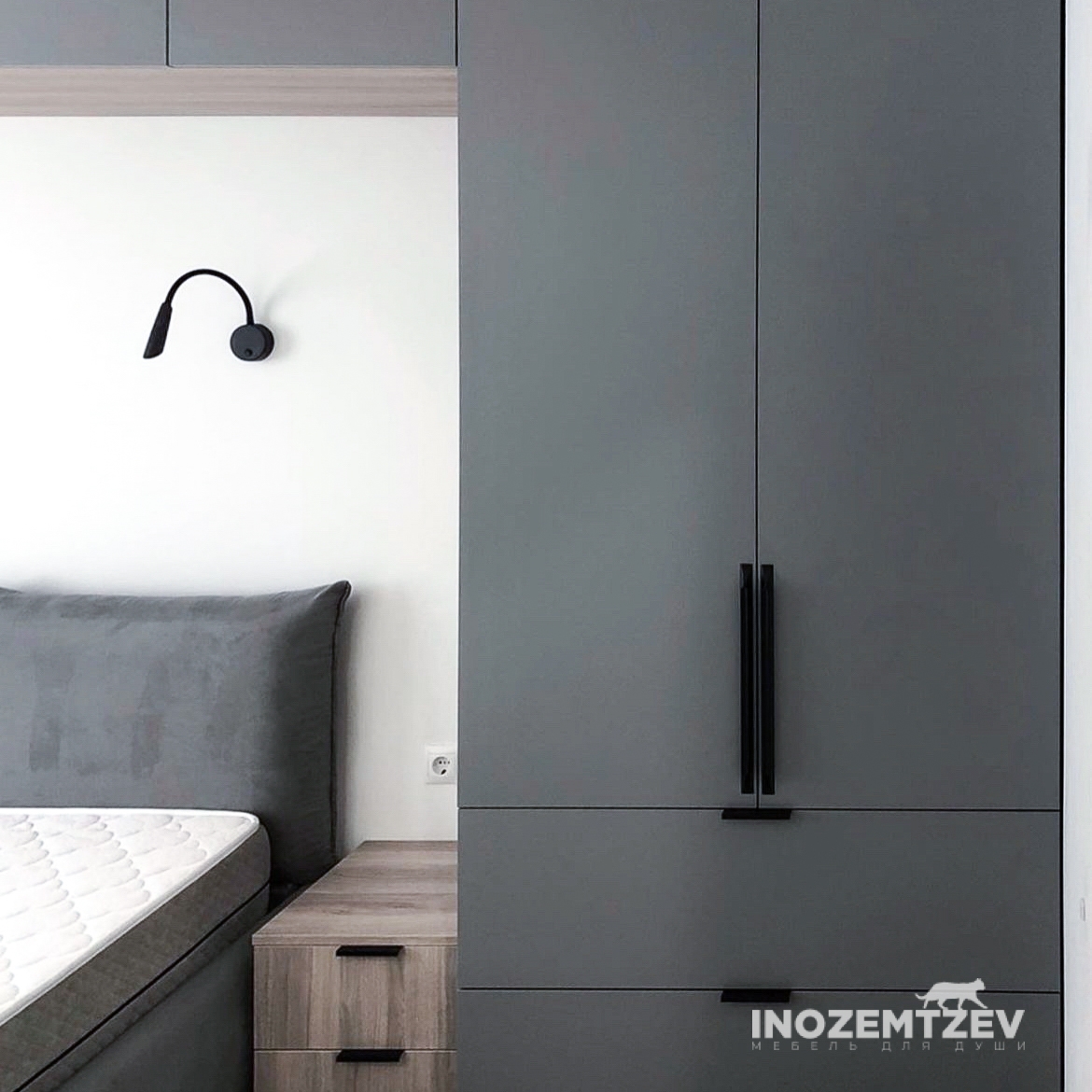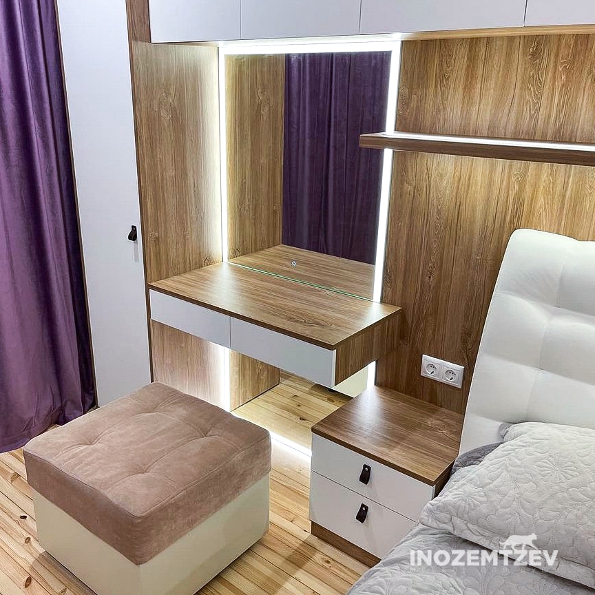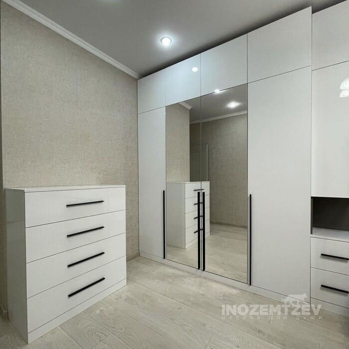 Шкафы устанавливаются по обеим сторонам от изголовья, они могут быть во всю высоту стены, либо с антресолями. Над самой кроватью, обычно, навешивают дополнительные шкафчики или полочки. Однако, некоторые, в целях перестраховки, оставляют это пространство пустым. Идеальный шкаф для вашего интерьера с грамотной организацией пространства легко превращается из мечты в реальность, если за дело берутся настоящие профессионалы.