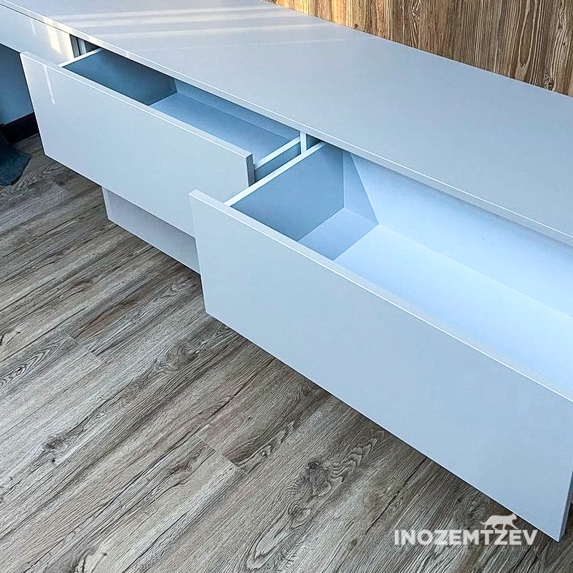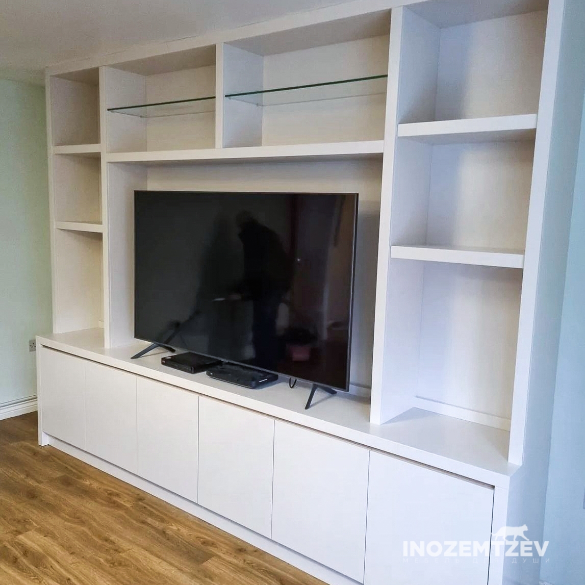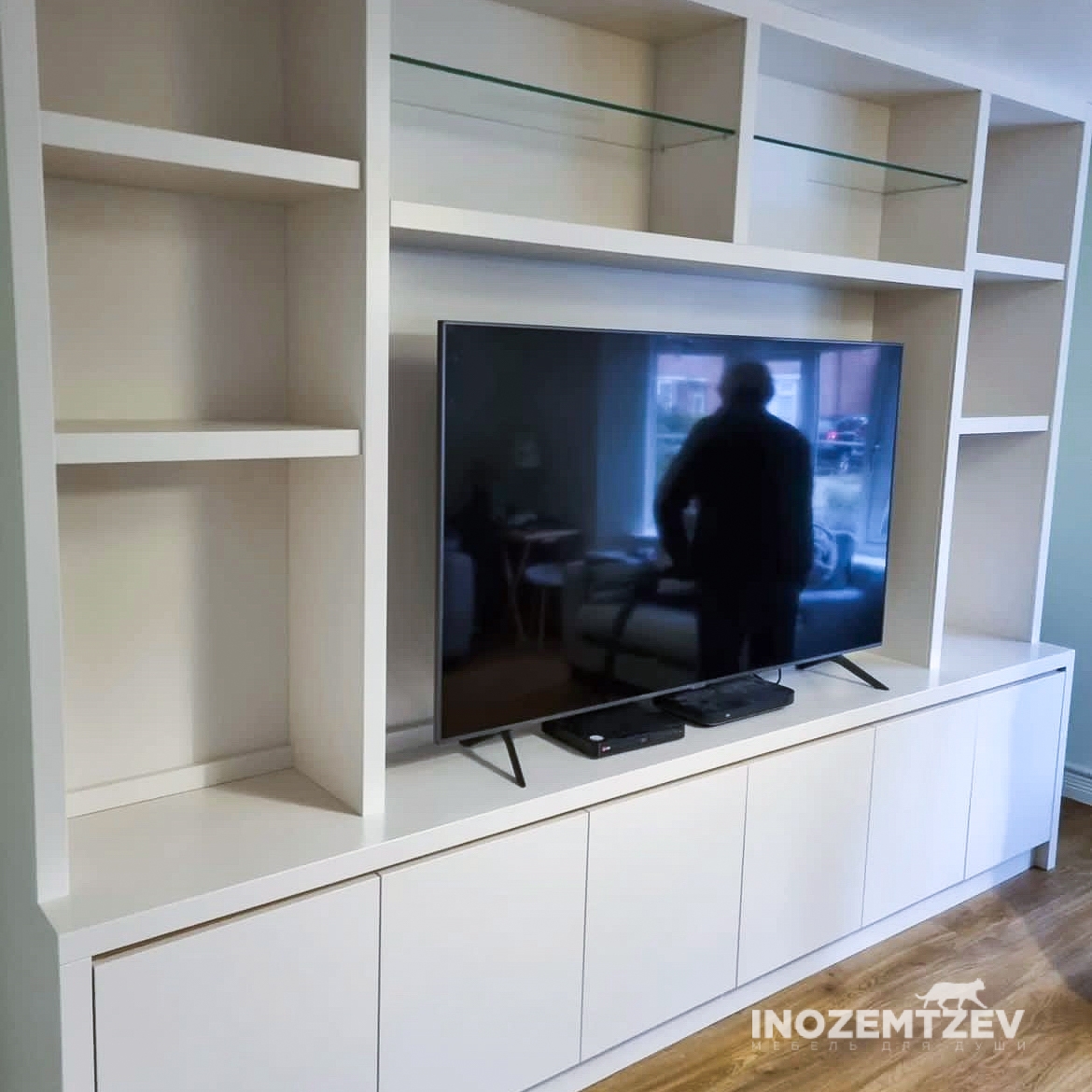 Стенка под телевизор из МДФ эмали с интегрированными ручками