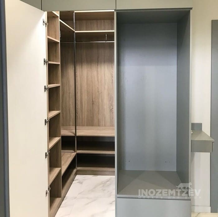 Угловой гардеробный шкаф станет отличным решением для спальни или прихожей. Конструкция предполагает хорошую вместительность и разные варианты дверей — например, распашные или купе. У нас представлен широкий выбор фасадов, разнообразное внутреннее наполнение и возможность изготовления угловой конструкции для маленьких, больших и нестандартных комнат. Угловой гардеробный шкаф или компактная модель с распашными дверями: мы справимся с заказом любой сложности. Ознакомьтесь с образцами, вызовите замерщика и наслаждайтесь эргономичной качественной гардеробной!